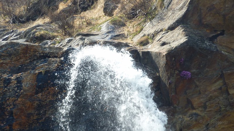 La bocca della cascata, sul lato destro sono cresciute delle primule irsute