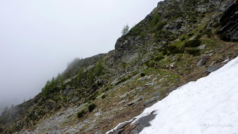 Il sentiero si infila in più ampi nevai, che ci tocca aggirare o attraversare