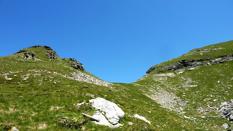 Ci avviciniamo alla bocchetta, passando sopra la pietraia a sinistra